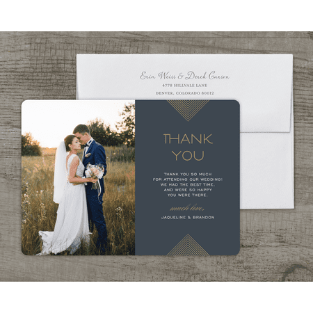 Tips for writing wedding thank you cards. You know that your thoughtful wedding guests deserve prompt and sincere thank you notes for their generous wedding gifts and for coming out to help you celebrate. Photo wedding thank you card. We offer both folded and flat wedding thank you cards in a variety of different patterns and templates created by some of the most renowned designers in the business. Printable photo thank you cards by canva.